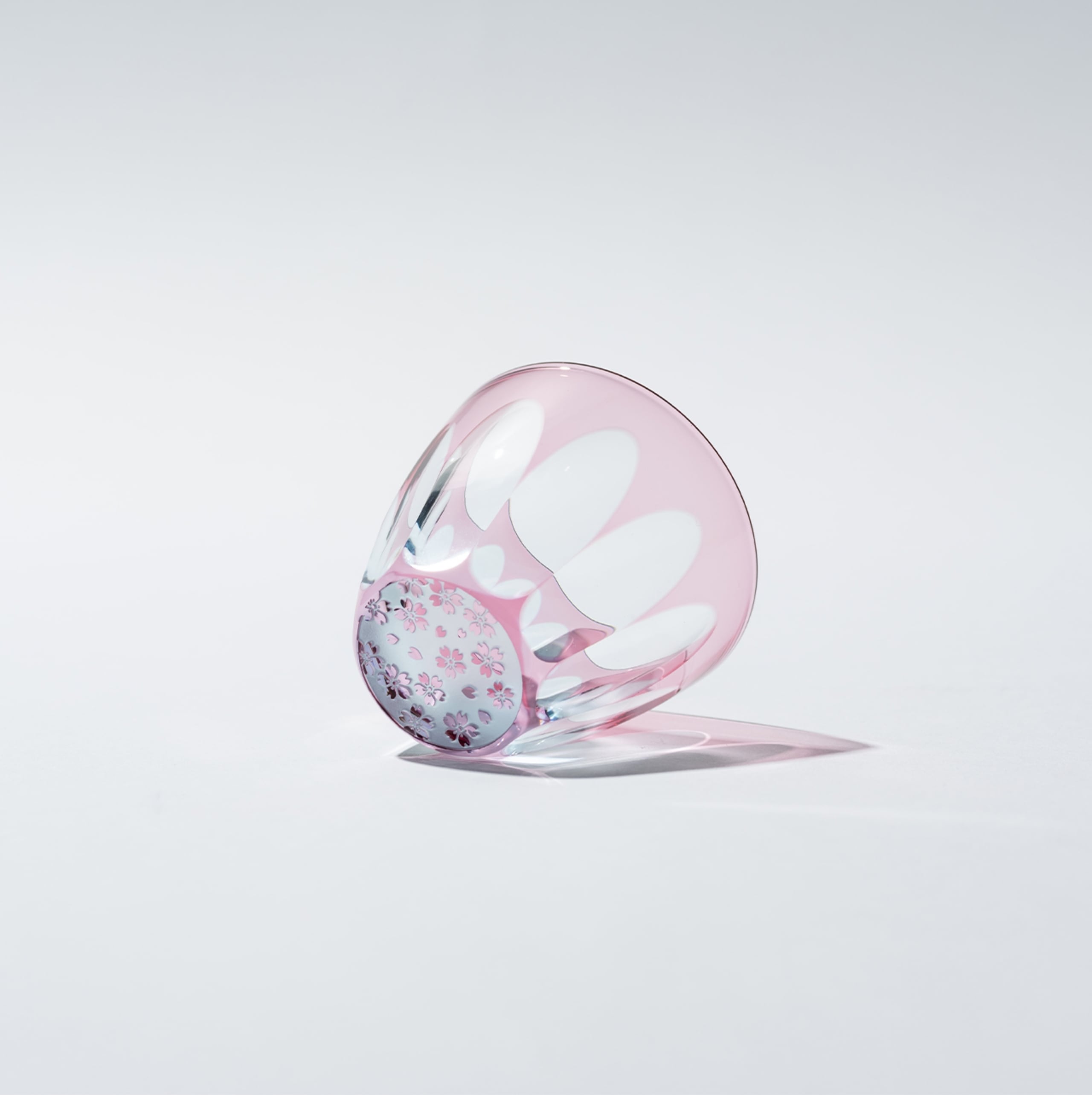 グラスにお酒を入れるとグラス底面に彫刻した模様が側面に映り込み桜の景色が広がる、椎名切子ならではの不思議なグラスです!
