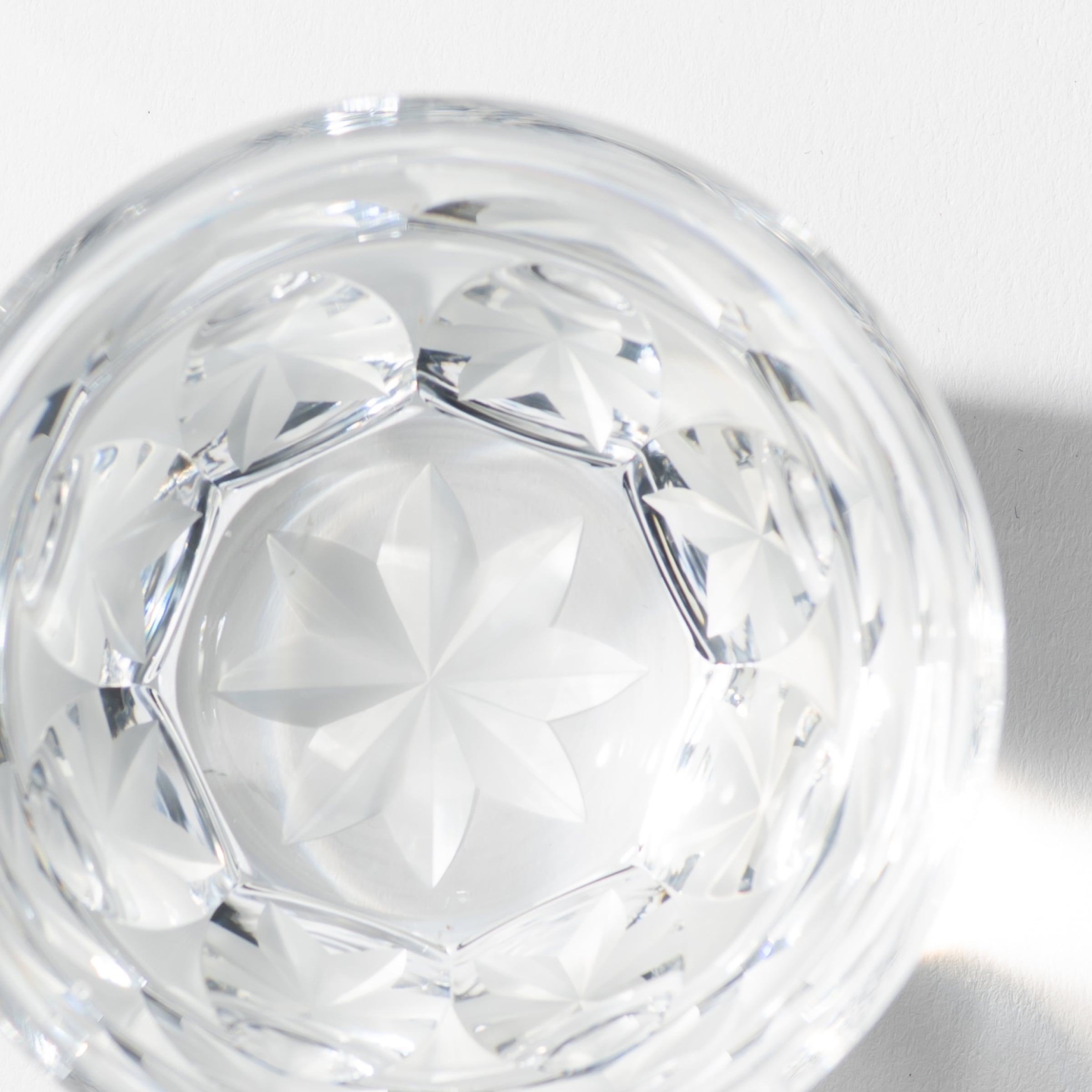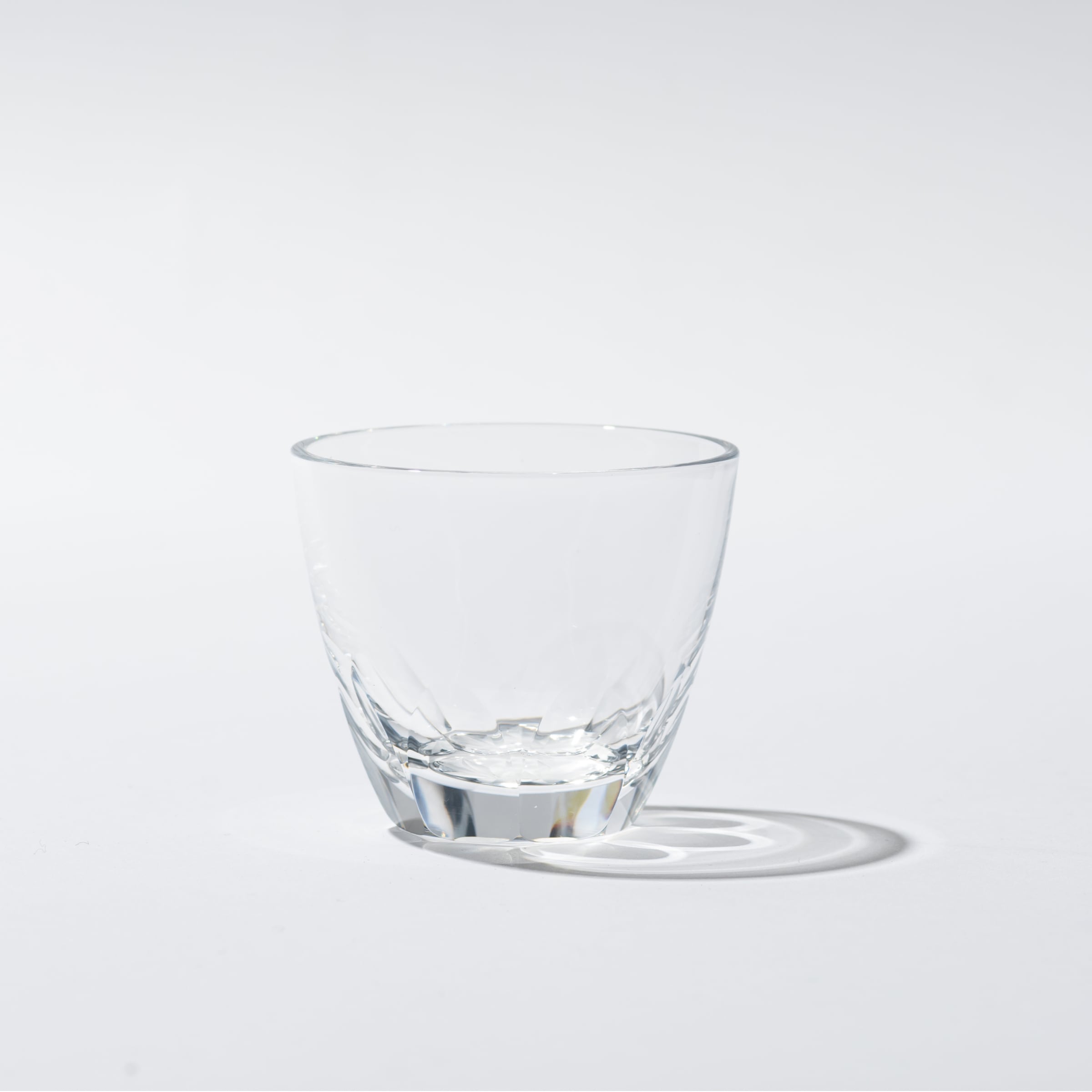 透きガラスに8面の平切り子底面に菊の切子を削りました。