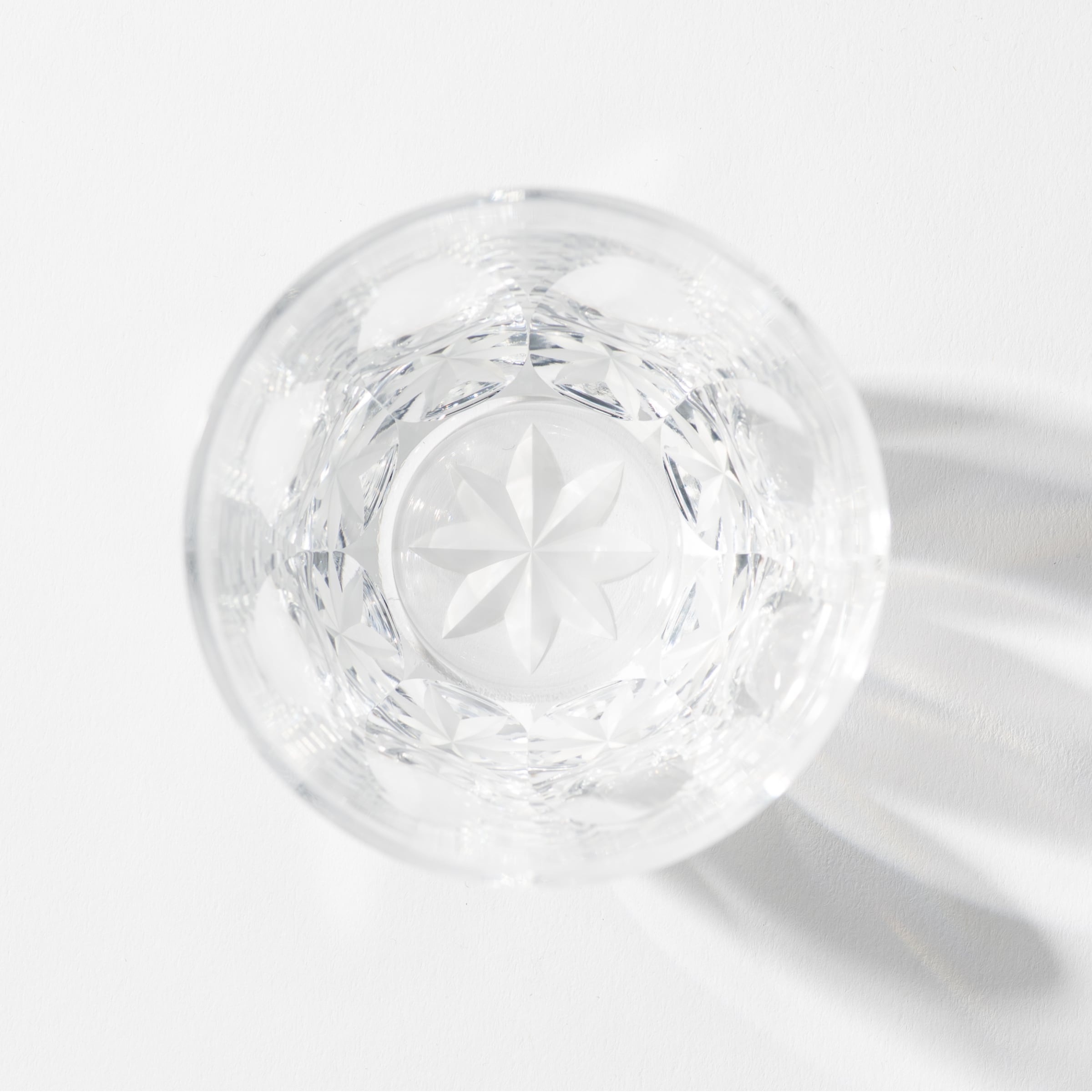 GLASS-LABの平切子の技術を存分にお楽しみ頂ける一見シンプルに見えますが、お酒やお水を灌ぐと底の菊の模様がグラスの中いっぱいに広がり絢爛豪華なシャンデリアの様になります。
